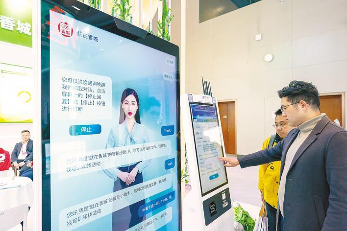 11月29日在武汉光谷会展中心召开的第三届全国人才服务业发展大会上,各类人工智能求职技术成为最热门的话题。作为大会的重要组成部分,600多家龙头企业在重点行业举办专场招聘会,创造了4万多个优质就业岗位,吸引了大量求职者。 (湖北日报全媒体记者韦乐供图)