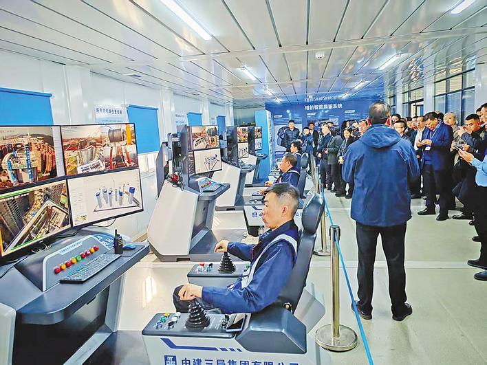 参会人员对远程中控塔机进行了检查。 (湖北日报记者戴文辉供图)