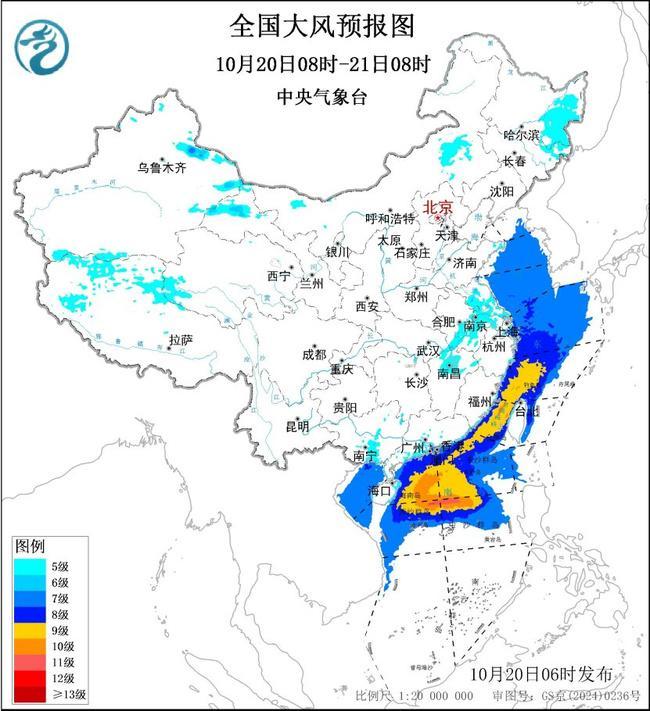 央视新闻:中央气象台从早上6点起继续发布大风黄色预警。 10 月 20 日上午 8 点开始10 月 20 日至上午 8 点10月21日,预计新疆北部和东部、西藏西部、青海西南部、河西、甘肃、内蒙古西部和东部、黑龙江东部、吉林东部、山东半岛及大部分地区发布大风黄色预警。中南部江苏省、安徽省、江西省北部、广西南部、广西南部部分地区将有5~6级风、阵风7~8级。东海南部海域、台湾海峡及北部和中部地区将有9~10级、阵风11~12级大风。 部分。南中国海。华南海域和中南部分地区将有11~12级风、阵风13~14级。黄海大部分地区将有7至8级风力和9至9级阵风。东海、巴士海峡、台湾以东海域及北部湾。 10月21日上午8时至10月22日上午8时,新疆北部和东部、河西、甘肃、西藏西部和北部、青海南部、江苏南部、安徽南部、江苏北部、广东南部、广西南部等地部分地区有5~6级风、阵风7~8级。等级:东海西南海域、台湾海峡、台湾以东部分海域、南海北部、中西部北部海域将有9~10级、阵风11~12级大风。南海西北部部分地区将有11级大风,阵风12~13级。黄海中南部海域、北部海域将有7~8级、阵风9级大风。东海、台湾以东海域和北部湾。防御指引: 1、中国中央气象台和海上搜救中心提醒受大风影响地区作业的船舶和人员返港撤离,防止船舶抛锚、搁浅、相撞。有关部门要加强口岸设施建设,做好防范准备。 2、林业、草原和城市消防部门负责机场、铁路、公路等消防准备和交通管理工作,采取措施确保道路安全。 3.户外高处、水中作业、娱乐。取消娱乐活动,取消户外聚会,关闭户外危险电源,妥善加固或搬迁仓储棚、脚手架标志、临时设施等易被大风吹走的构筑物。 4. 行人和车辆不应留在临时结构下,例如高层建筑、标志或树木。