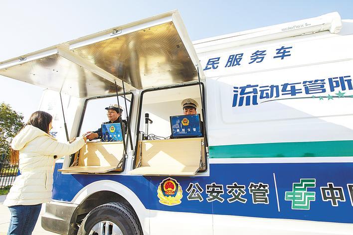 1月11日,襄阳市居民在东金新区门前的警用邮车管理所方便地补办了丢失的证件。据悉,这项服务是由该市交通管理部门和襄阳市邮政局联合推出的。集过期换证、遗失换证、损坏换证、体检等多项行车管理功能于一体,精准打通业务办理“最后一公里”,为百姓提供直达家门口的便捷车队管理服务。 (世界网李旭辉供图)