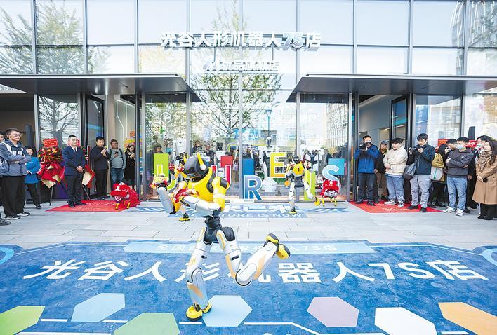 人形机器人将在机器人7S店前表演。 (湖北日报全媒体记者韦乐供图)