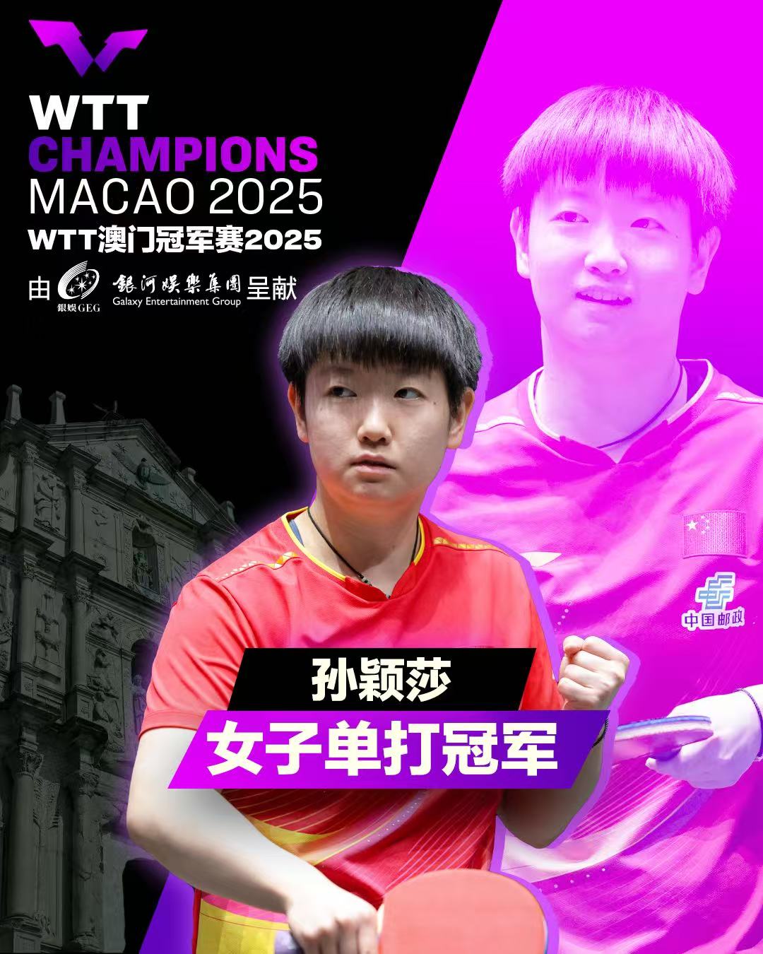 - 编辑:admin -Sun Yingsha赢得了WTT澳门冠军单打女子单打冠军
