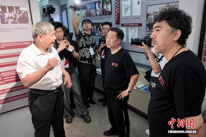 9月20日,日本入侵者Quzhou(左第一)的细菌战争暴露的董事Wu Jianping向电影的主要创作者介绍了故事。张摄影,张本新闻社的张邦记者