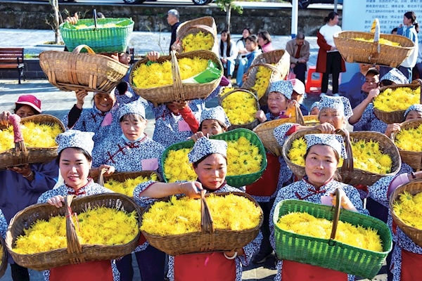 展览期间,厨师大师精心准备的菊花宴、茶艺师展示金菊茶技艺、菊花酒、菜籽油等当地农产品展示等一系列精彩的文化艺术节目让游客大饱眼福。